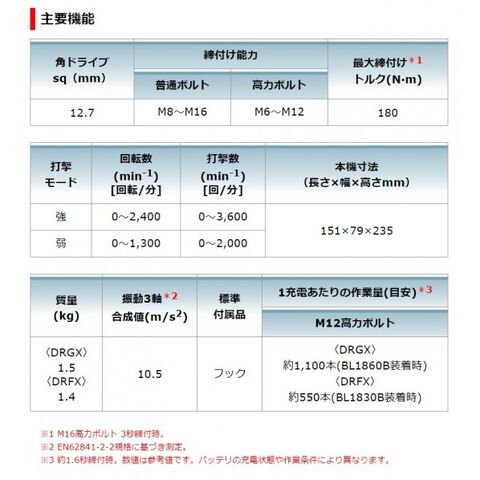 ●標準付属品:フック ※バッテリ・充電器・ケース別売