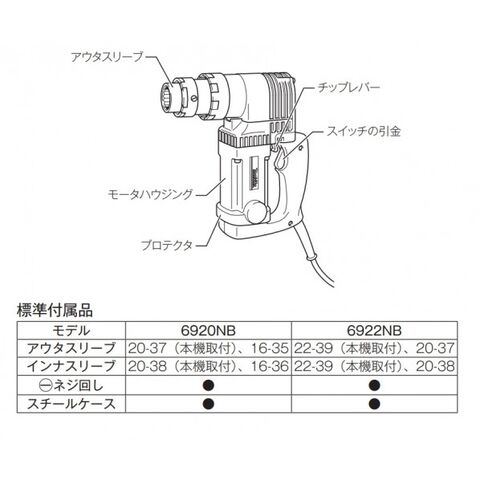 ●標準付属品:ケース付・なめり防止機構付・アウタスリーブ・インナスリーブ・M16、M20用(各1個)・(-)ドライバ