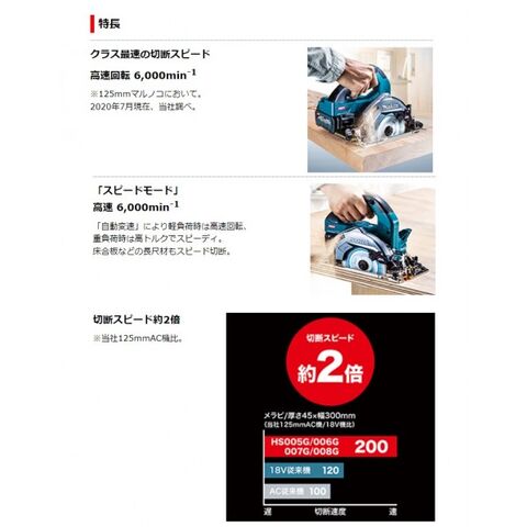 マキタ(makita) 40V 充電式マルノコ アルミベース フルセット 鮫肌チップソー付 125mm 青 HS008GRDX 1点のレビュー