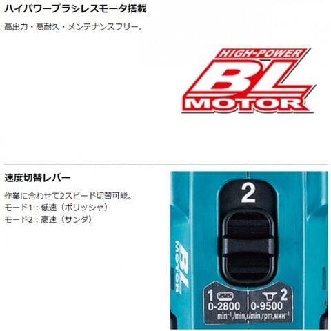 低速ではポリッシャ、高速ではサンダ(要別販売品)として使用可能
