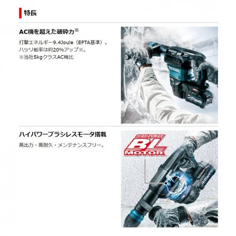 ●標準付属品:ケース付・ブルポイント280(SDSマックスシャンク)・ビット用グリス ※バッテリ・充電器別売