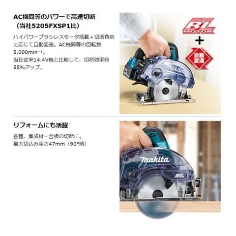 マキタ(makita) 18V 充電式防じんマルノコ アルミベース 本体のみ 125mm 青 KS514DZ 1点
