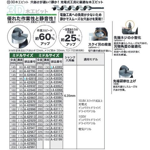 マキタ(makita) 3D木工ビット13.0-180 3D木工ドリル50.0-245 A-62985 1点
