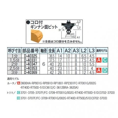 マキタ(makita) コロ付ギンナン面ビット1分 D-40325 1点