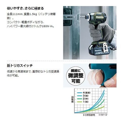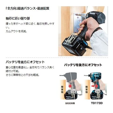 マキタ(makita) 充電式インパクトドライバ 18V(バッテリ×2・ケース付、充電器別売) ブラック TD173DXB 1点のレビュー