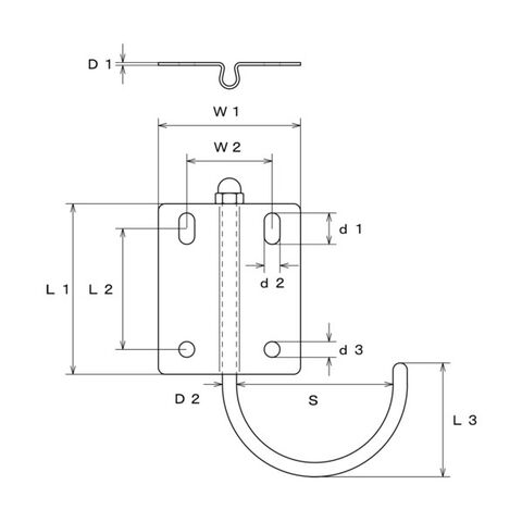 ●プレート上部の留め穴が長穴なので、取付位置の微調整が可能です。