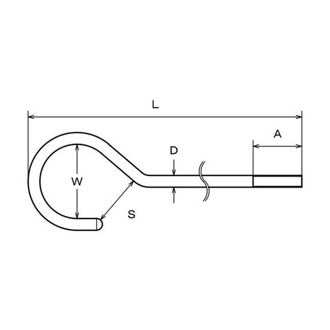 水本機械 ステンレス ネジ付ロングSカン 線径6mm 全長500mm A-2751 1点