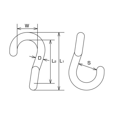 ・D(mm):6・L1(mm):51・L2(mm):39・S(mm):13・W(mm):15・使用荷重(kN):0.29・タイプ:ツイスト