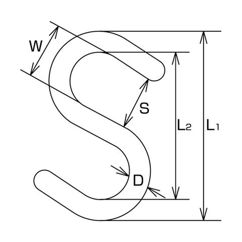 ・D(mm):8・L1(mm):66・L2(mm):50・S(mm):15・W(mm):20・使用荷重(kN):0.49・タイプ:ストレート