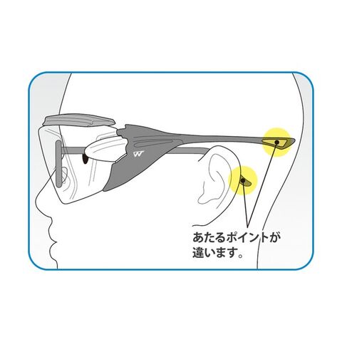 ●頭部をつつむようなテンプル形状で耳への負担を軽減します。