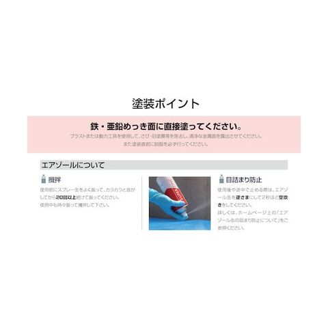 | 材質 | ●主成分:亜鉛末(フレーク粉末)、エポキシ樹脂、添加剤、溶剤 |