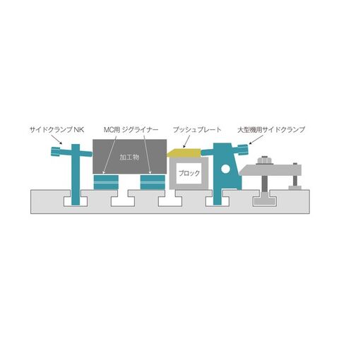 ●機械テーブルのT溝に差し込み、位置決めや平行出し、クランプ作業などに使用できます。