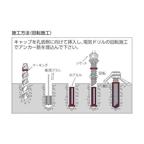 ●厚生労働省が定めるシックハウスの原因となるVOC13品目を原材料に使用しない、健康にも環境にも配慮した接着系アンカーです。施工時に不快となるスチレン臭は全くしません。