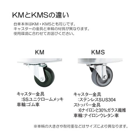 | 材質 | ●ステンレス(SUS304)●キャスター金具:スチール(表面処理:ユニクロメッキ)●車輪:ゴム |