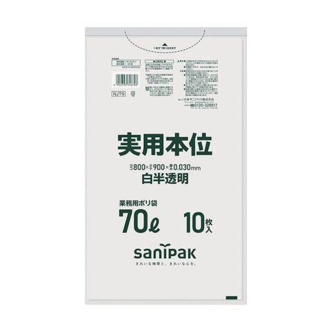サニパック 業務用実用本位70L白半透明 258 x 222 x 24 mm NJ79 10枚