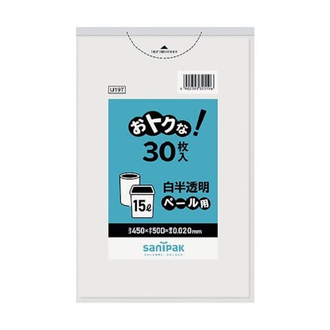 サニパック オトクナ!ペール用ゴミ袋 15L 白半透明 U19T 30枚