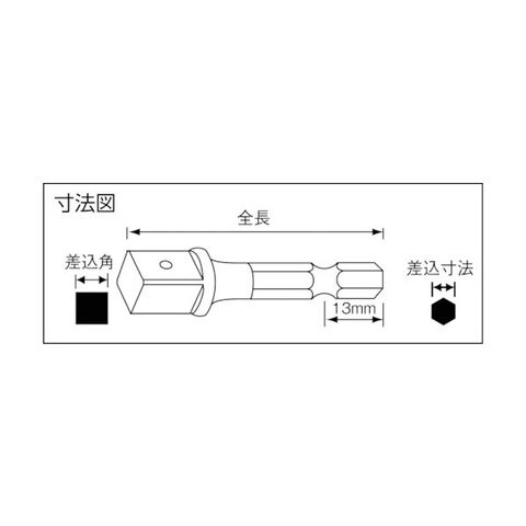 ナック ドライバーアダプター6.35x対辺四角9.52mmx50Lボール止付 60 x 55 x 10 mm 4DA305NB
