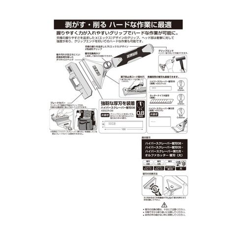 | 適合替刃 | オルファカッター替刃(大) 手楽スクレーパー弾力刃 ハイパースクレーパー替刃05 ハイパースクレーパー替刃08 ハイパースクレーパー弾力刃 |