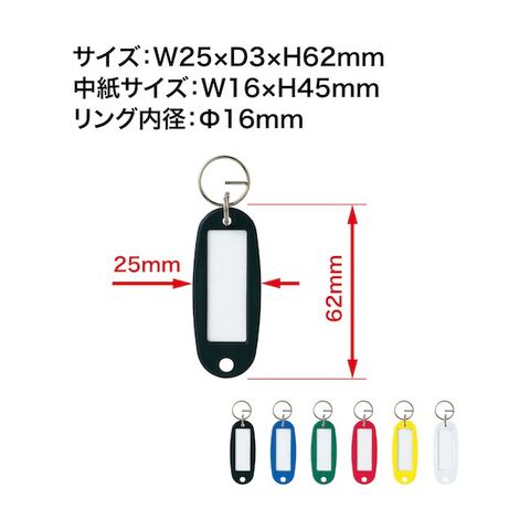 ●カギや持ち物の名前表示に便利です。●取付・取り外しに便利なGリングなので、ツメを痛めないやさしいリングです。●リングは、さびないステンレス製です。●縦(mm):62●色:青●タイプ:ハード●横(mm):25●リング内径:φ16mm●中紙寸法:W16XH45mm●1袋:10枚入●本体:PVC●リング:ステンレス