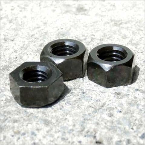 六角形状のナット。黒亜鉛メッキで雰囲気がでます。メッキ品のため、ややムラがあり、それも味になります。