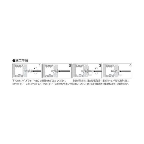 ●引張最大荷重:0.26kN/0.37kN(石こうボード厚み9.5mm/12.5mm)