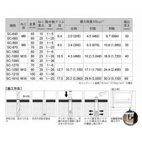 サンコーテクノ ステンオールアンカー SC-1290の仕様
