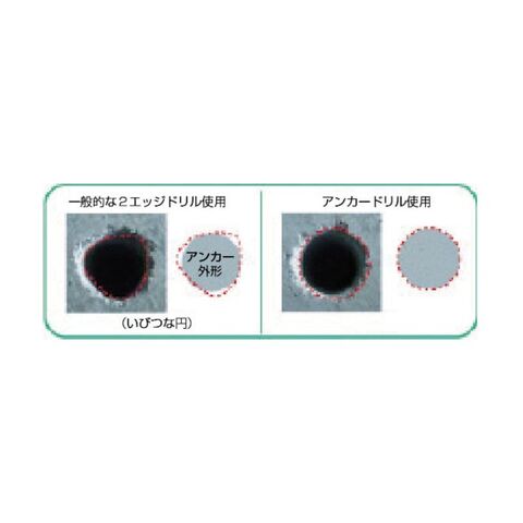 ●刃先を「4エッジ」にしたことで、一般的な2エッジドリルと比較すると真円に近い穿孔ができ、アンカー挿入がスムーズにできます。