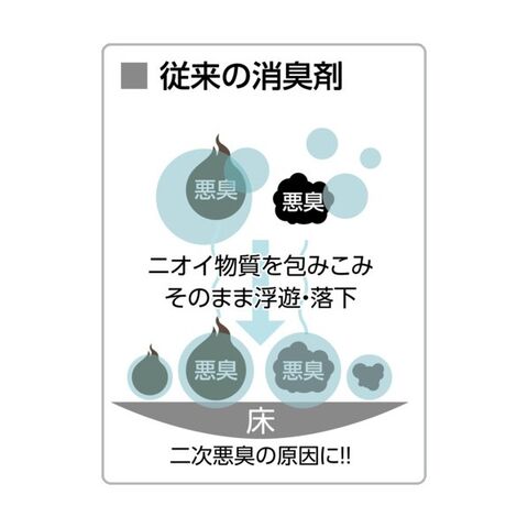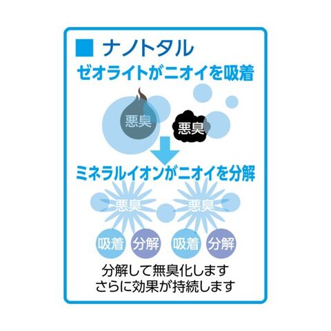 ●臭いの原因を分解消臭します。ゼオライトが臭いを吸着しミネラルイオンが臭いを分解します。