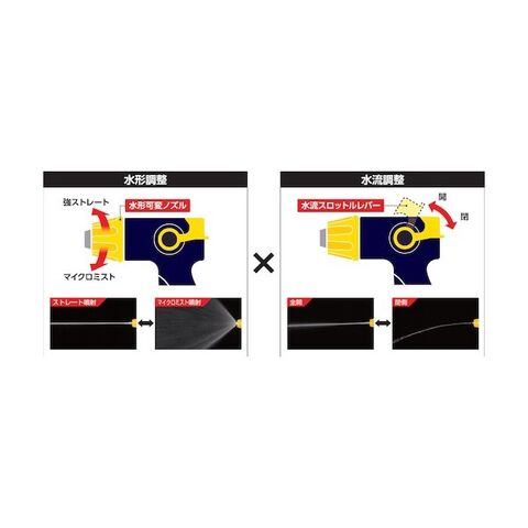 水形・水流の調整は各々無段階で自由自在で洗車専用設計なので、使いやすく操作は驚くほど快適です。