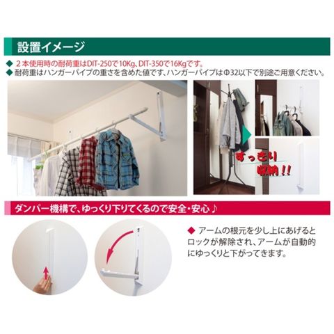●少量の洗濯物なら竿を設置せずに手軽に干すことができ、使用しないときはアーム部分をスッキリ収納