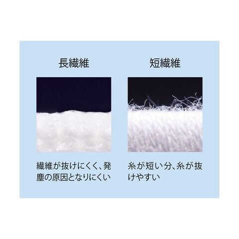 ・長繊維を採用しているため、手袋からのホコリや糸くずの発生を抑えます。