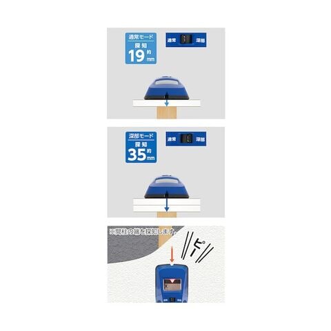 ●【探知物検出深度】通常モード:約19mm、深部モード:約35mm