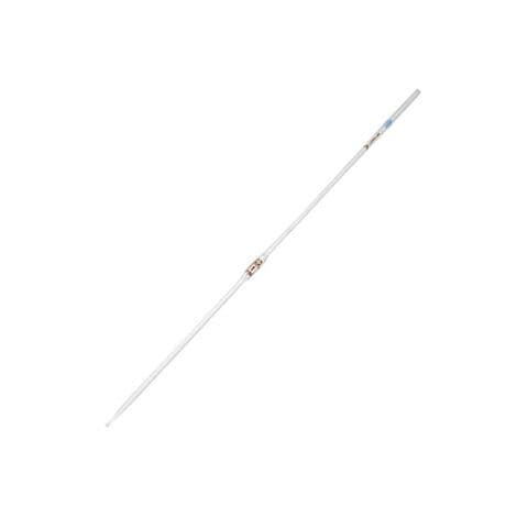 目盛は通常1本のみで、目盛のある部分の管径が細いため、同容量のメスピペットより目盛の精度が高いです