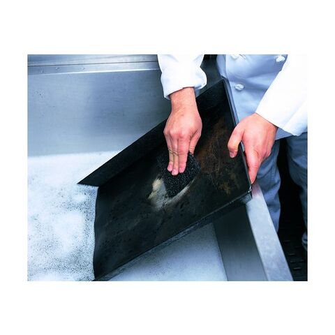粗めの粒子で、厨房機器類、鍋釜、レンジ周りなどにこびり付いたガンコな汚れを簡単に落とします。