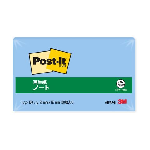 3M(スリーエム) ポストイット 再生紙ノート ブルー 655RP-B 1個