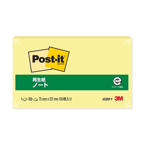 3M(スリーエム) ポストイット 再生紙ノート イエロー 655RP-Y 1個