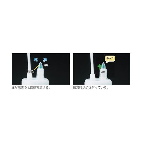 ●新開発のオートガスベント(液垂防止弁)で自動的にガスが抜けるので、エタノールなど揮発性の高い薬品でも安心してご使用いただけます。