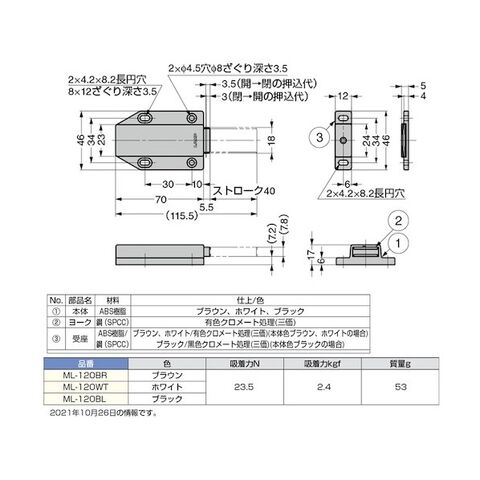 スガツネ(LAMP) スガツネ工業大型マグネラッチML120型(140-050-337) ホワイト ML120W 1個