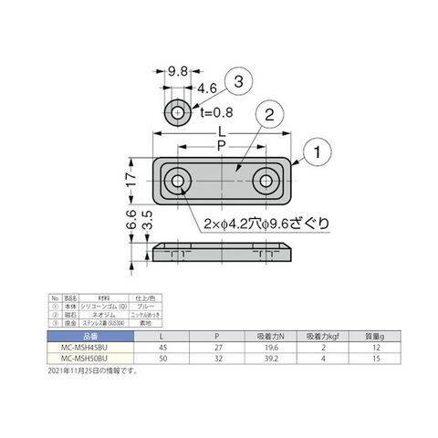 ●ネオジム磁石をシリコンゴムで包んでいるため、吸着時の衝撃音を和らげ高吸着を実現しました。