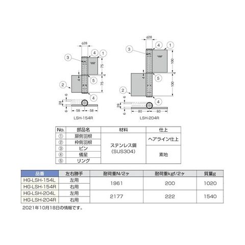 スガツネ工業 スガツネ工業 170-034-219 ステンレス製重量用旗蝶番 左用 高さ154 173 x 94 x 36 mm HG-LSH-154L 6
