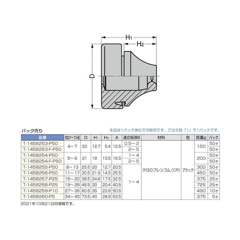 スガツネ工業 (210038237)T-1458253-P50防水・防塵グロメット T-1458253-P50 50個