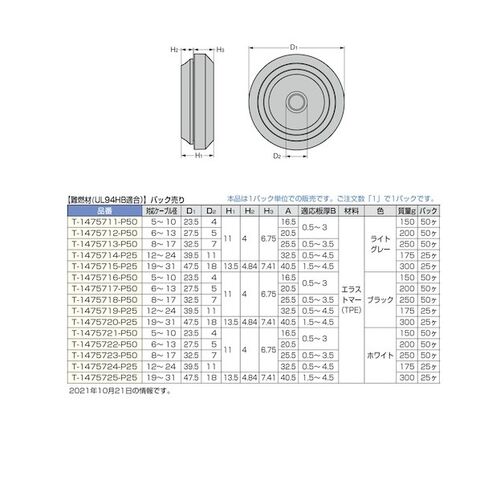 スガツネ工業 (210038695)T-1475716-P50防水・防塵グロメット T-1475716-P50 50個