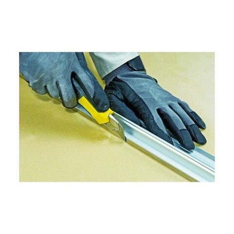 タジマのカッターガイドは高さ25mmのガードを設置することで万一の刃の乗り上げから手を守ります。