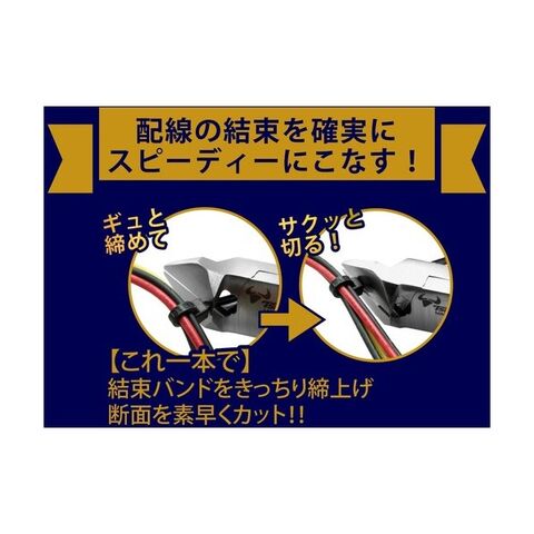 ●結束バンドを掴んで締めて、サクッとツラ切りが可能で、これ一本で結束完結です。●刃には結束バンドを掴むための専用セレーション加工が施されています。●切り残しがなく、怪我を防止します。●結束バンドを使用した作業に。●切断能力(mm)プラスチック:φ3.0●切断能力(mm)軟鉄線:φ1.2●切断能力(mm)銅線:φ2.0●全長(mm):130●結束バンド対応幅(mm):6●ラウンド刃●結束バンド専用掴み刃●機械構造用炭素鋼●グリップ:塩化ビニール●非絶縁工具です。電源を切ってお使い下さい。●使用用途以外には使用しないで下さい。●その他商品台紙注意事項参照。