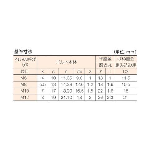 | 材質 | ●低炭素鋼(SWCH)●表面処理:三価クロメート仕上げ(白) |