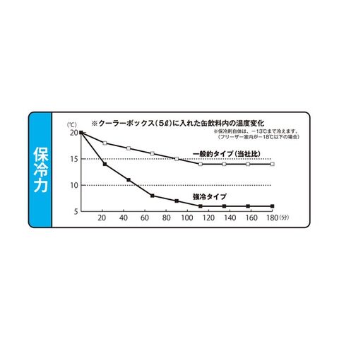 ●強保冷タイプ(冷凍庫から出してクーラーボックスに入れた後、1時間後の表面温度がー13℃程度)