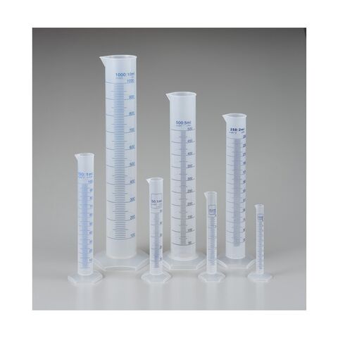 ●見やすい青目盛付で耐薬品性のあるPP製メスシリンダーです。