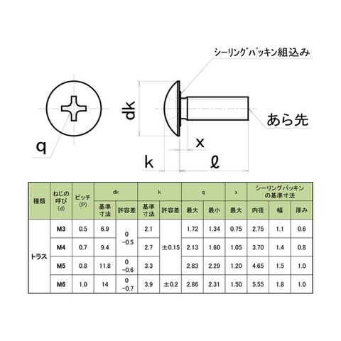 トラスコ(TRUSCO) シールアップ スクリュー トラス型 SUS全ネジ ニトリルゴムパッキン付 M6×14 SUSC-0614NBR-5 5本
