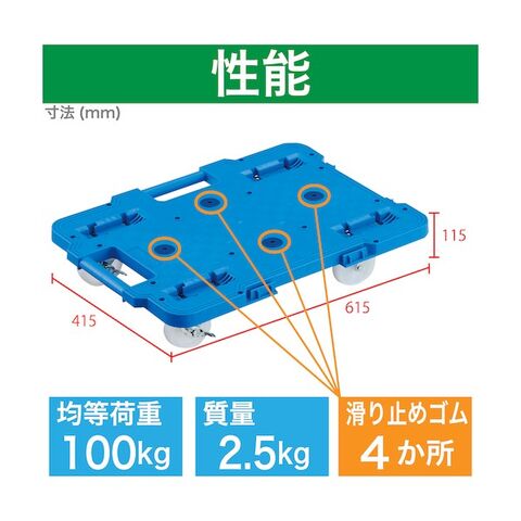 トラスコ(TRUSCO) 連結式ルートバン 615X415 ナイロン車輪 4輪自在 ストッパー付 青 MPB-600NJS-B 1点