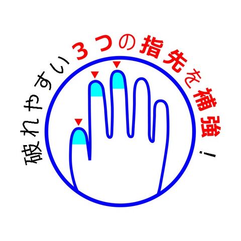 ●特別な編み方で破れやすい親指、人差し指、中指の指先摩耗を2倍以上強くしています。(メーカー比)